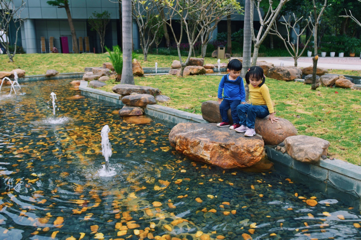 欧式亭台、喷泉、灯光、吊床、绿意葱茏,漫步花园或奔跑玩乐或促膝长椅或侧耳倾听